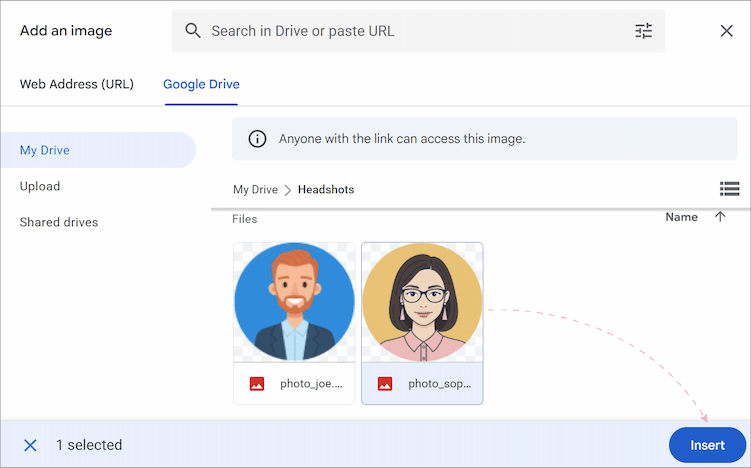 - My Drive/Shared drives – grab something you've already got saved there.