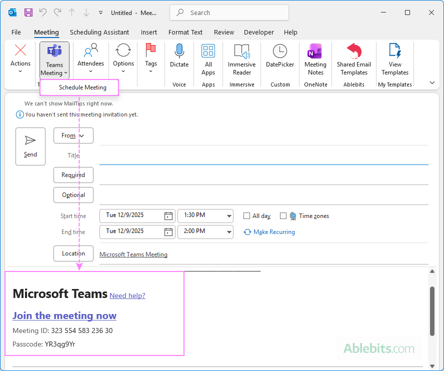 How to schedule a Teams meeting in Outlook